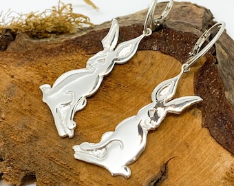 Sterling Silver Hare Drop Earrings: Handmade Rabbit Jewelry