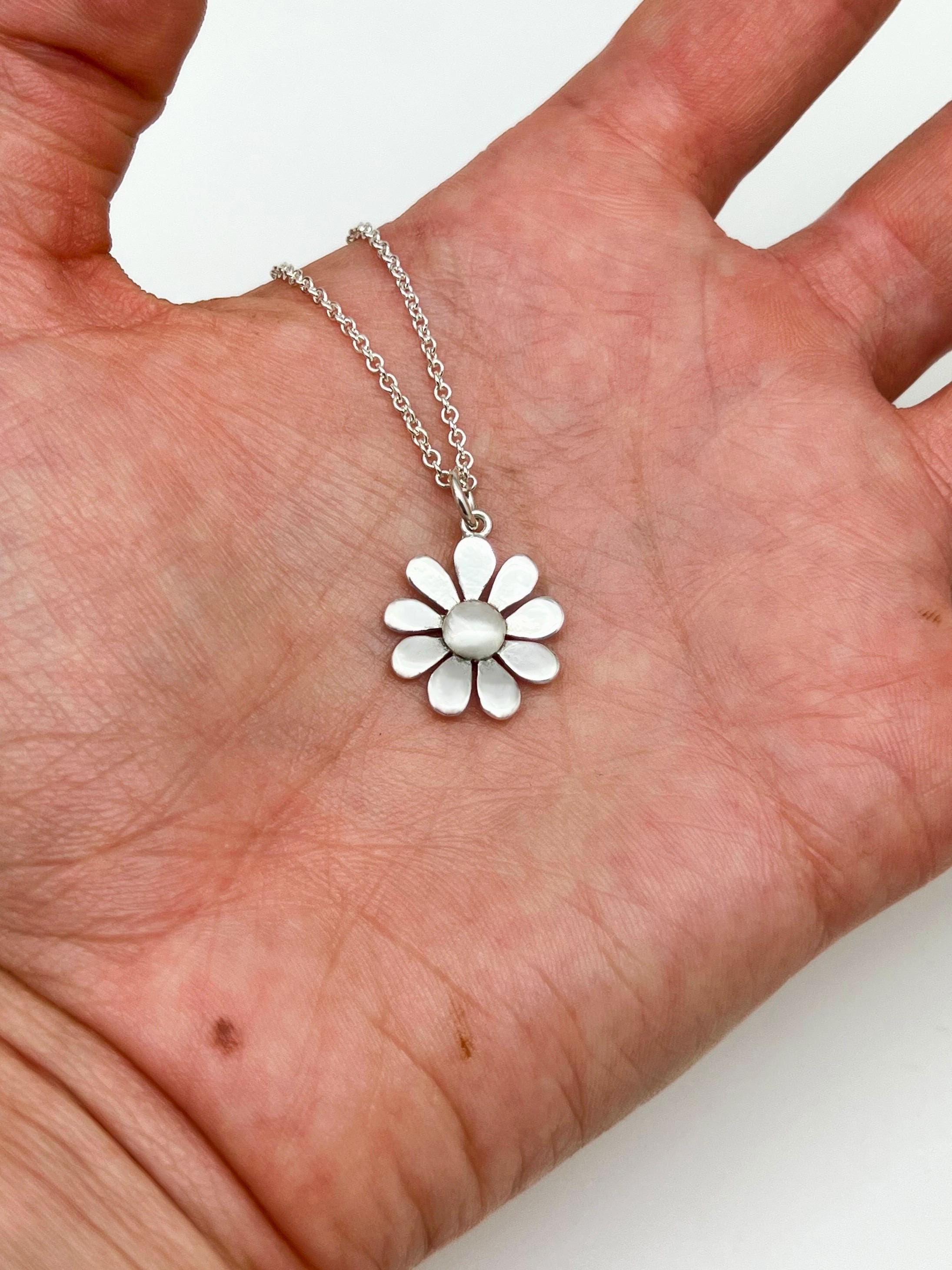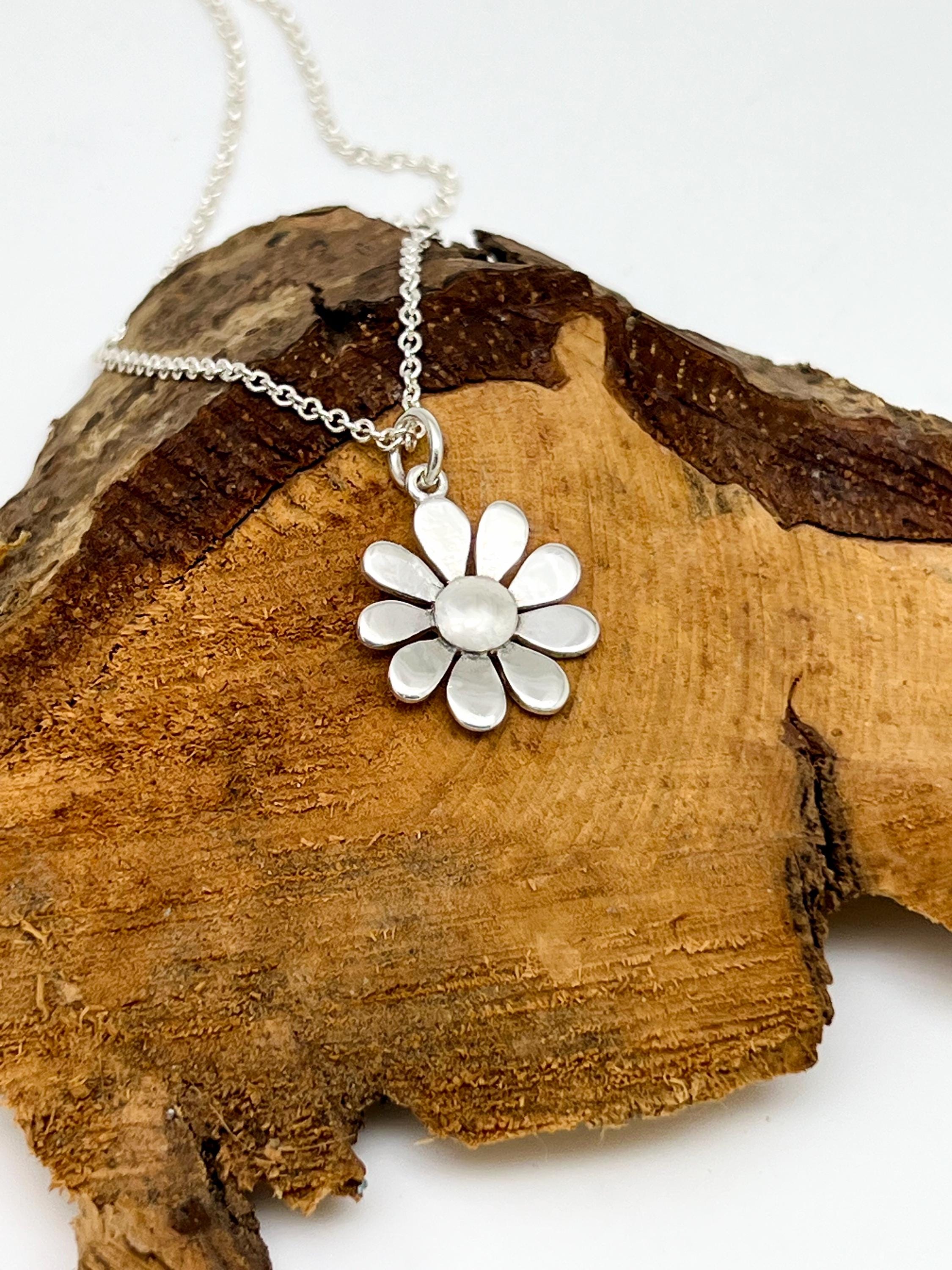 Handmade in Cornwall - Solid Silver Daisy Pendant.