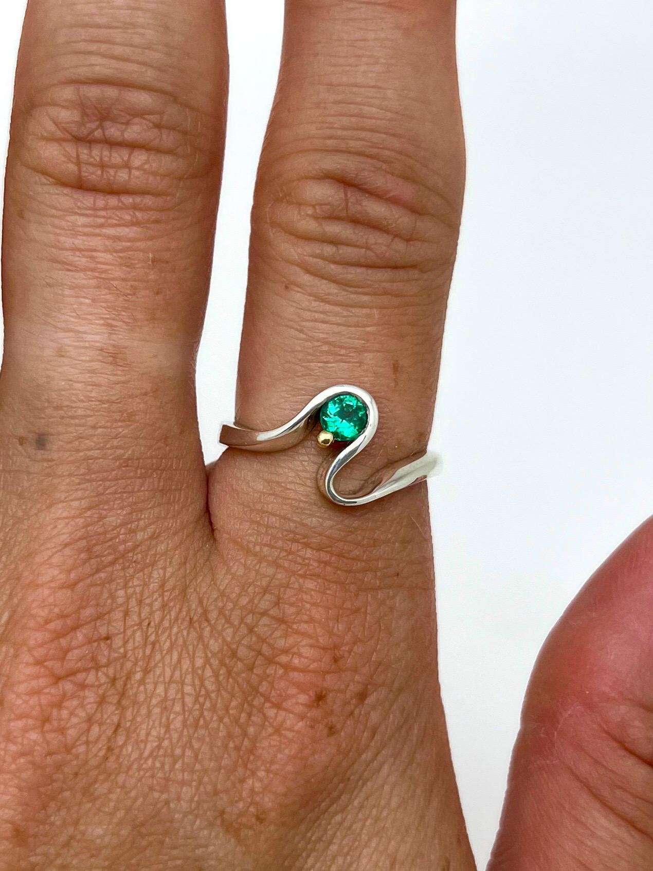 With a talent for bringing movement and fluidity to metal, Phoebe Hughes has handmade this unique solid silver wave ring set with a deep Zambian Emerald. The cherry on top? Why it’s a solid 18ct gold claw which elegantly holds the stone, drawing out its warmer tones, allowing it to fully shimmer against the skin.