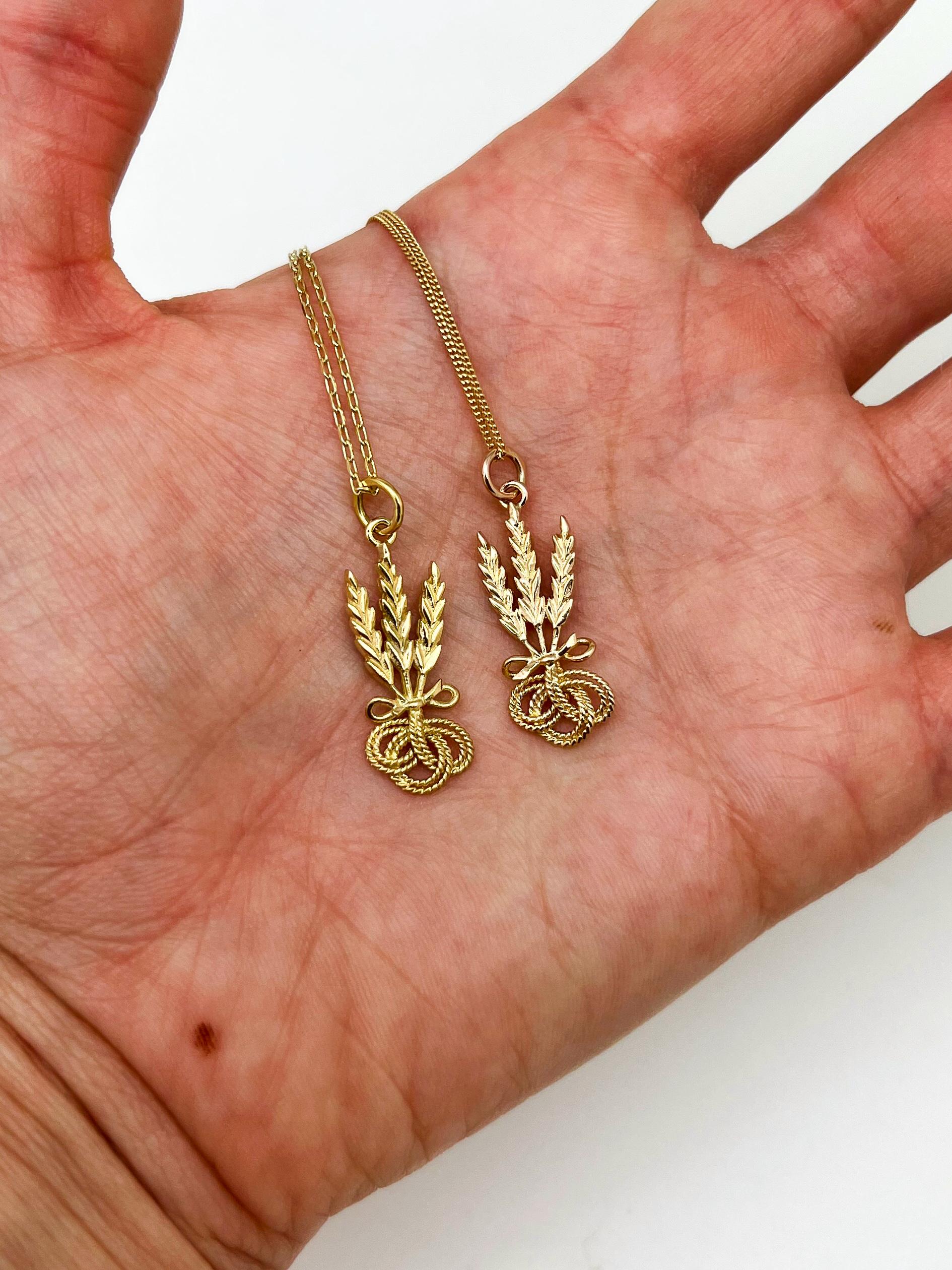 Celebrate craftsmanship and Cornish heritage with this exquisite corn dolly pendant, handmade and designed in Cornwall by Douglas Hughes. Each pendant has been carefully cast in solid 9ct or 18ct yellow gold, honouring a traditional harvest symbol with an elegant, contemporary design.