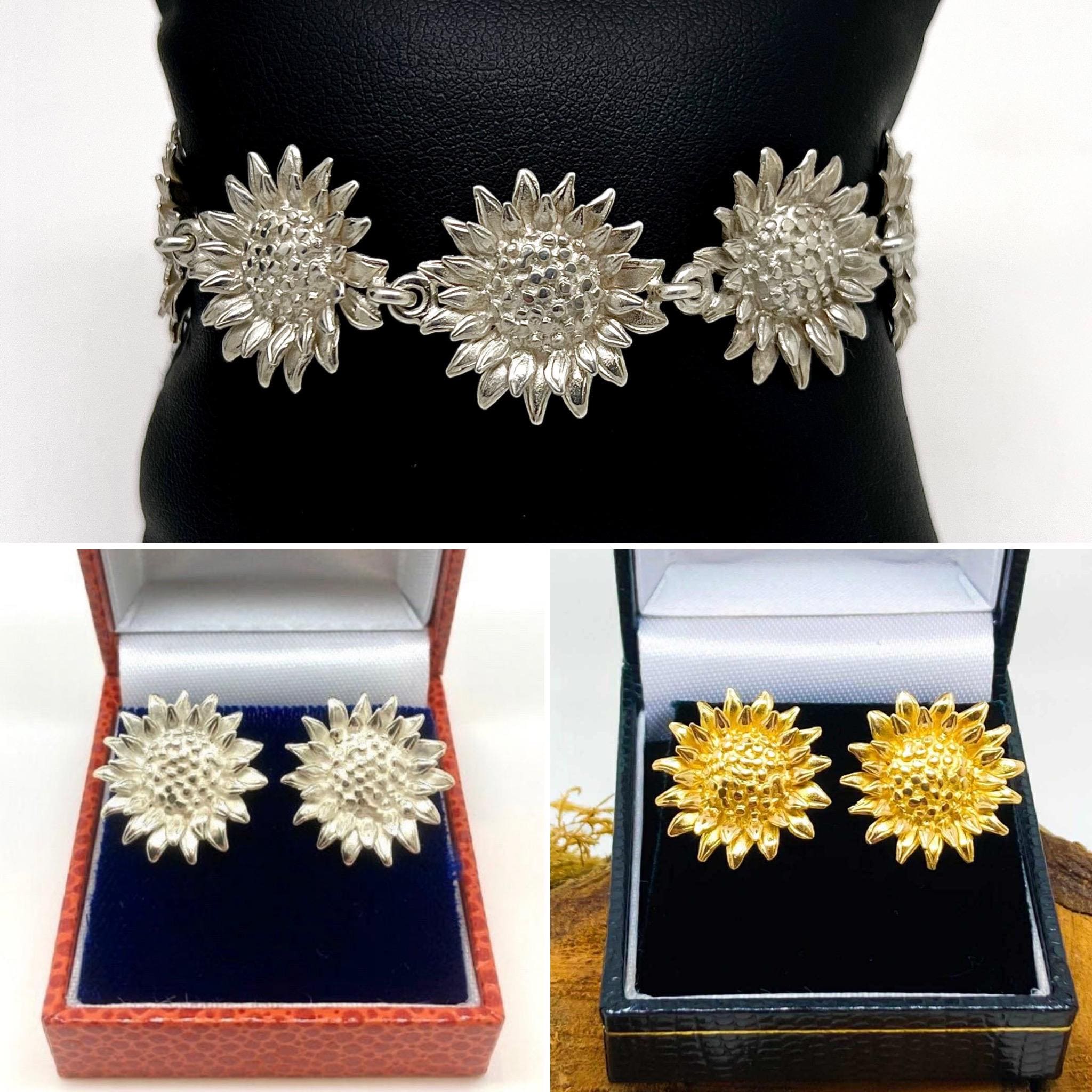 9ct Yellow Gold Sunflower Stud Earrings: https://www.etsy.com/uk/listing/1118111196/handmade-9ct-yellow-gold-sunflower-stud