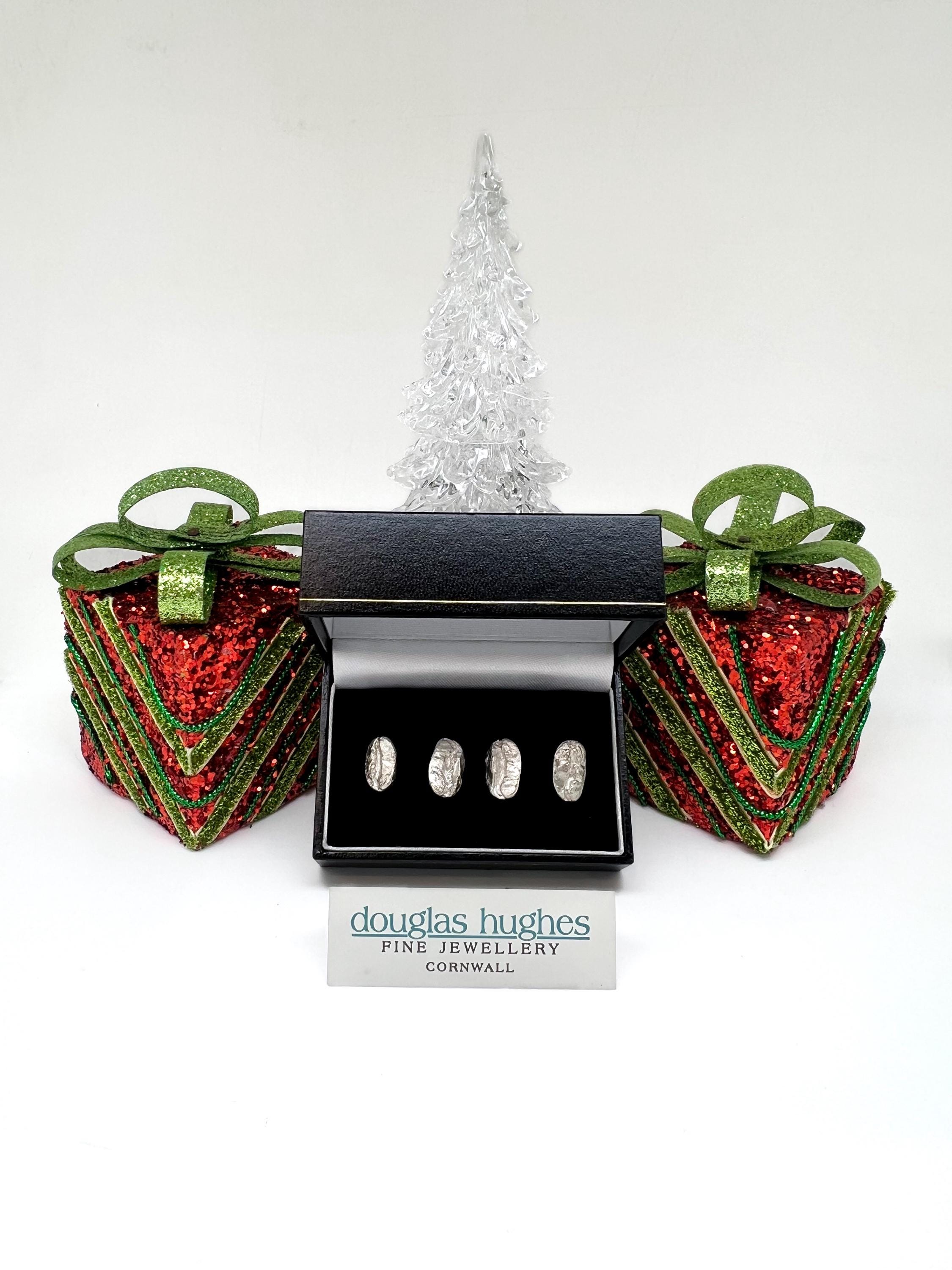 All of our designs are handmade in-house by Douglas and his daughter, Phoebe, in Cornwall. We do not use cad cam technology or computer-generated images as we prefer traditional handmade Jewellery which offers unique individuality across all of our pieces. We also repair, restore and up-cycle all types of jewellery.